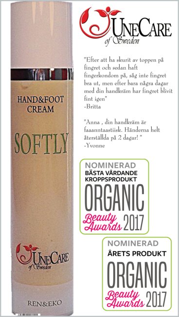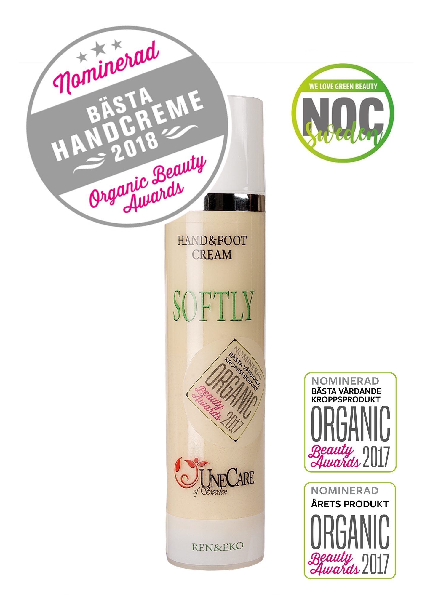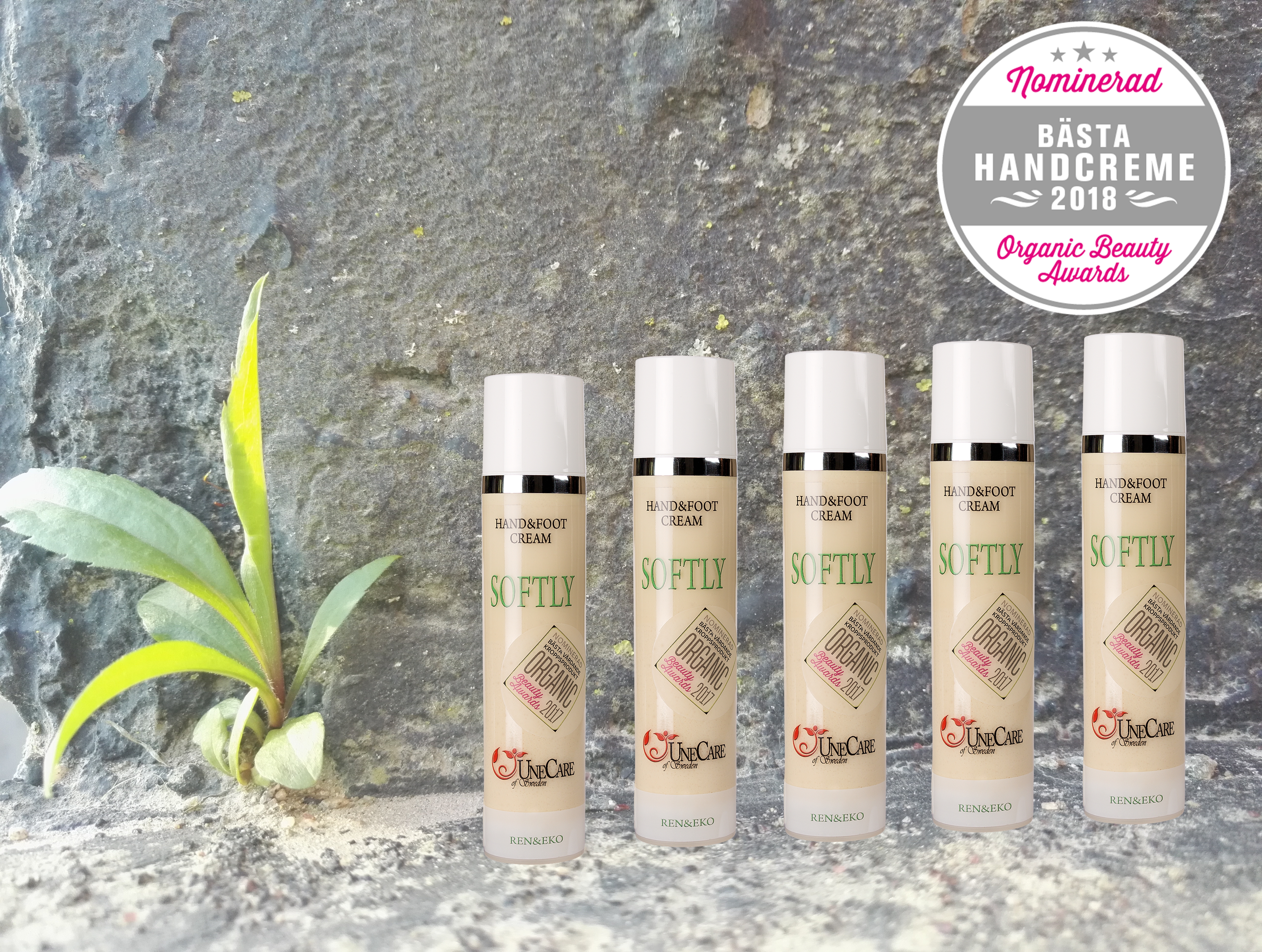 2017 blev vi nominerade i Årets Produkt (Lovely Facecream & Softly Hand&Footcream) och i Årets Bäst Kroppsvårdande Produkt (Softly Hand&Footcream) i Organic Beauty Awards.